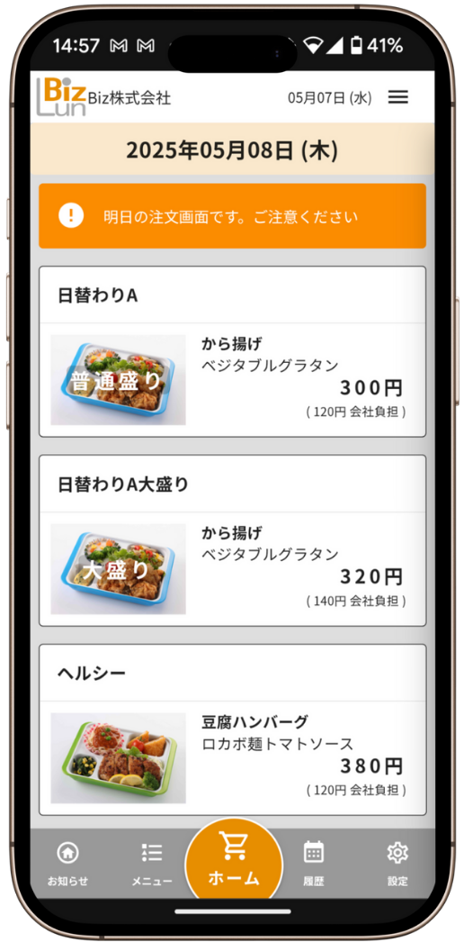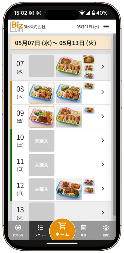 煩雑だった弁当注文の管理業務が、BizLunの導入でぐっとシンプルに。誰でも迷わず使える設計で、社内での運用も安心です。